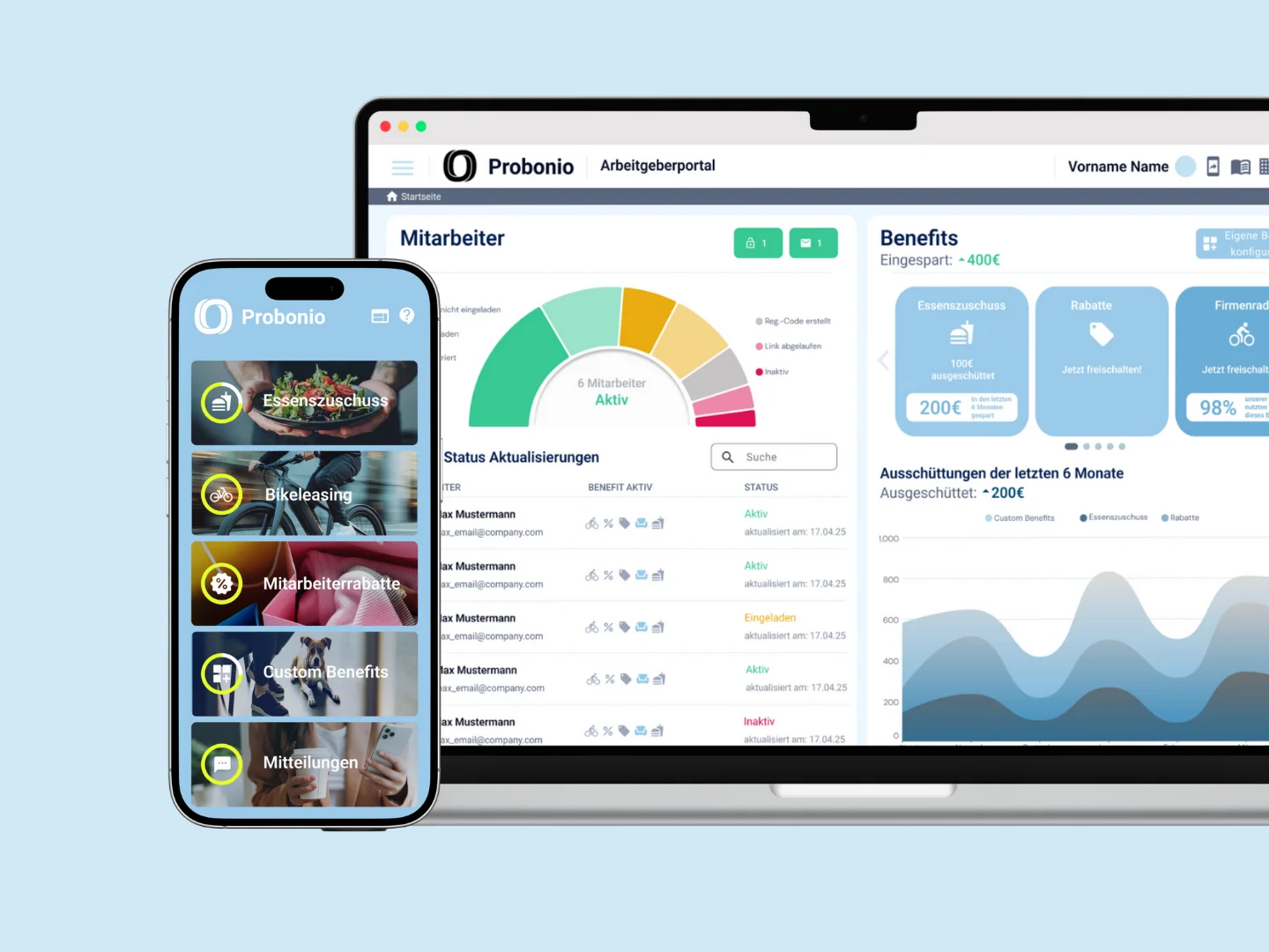 Probonio macht Mitarbeiter-Benefits einfach: Unsere Software bündelt viele steuerfreie Vorteile – vom Essenszuschuss über das Dienstrad bis zu exklusiven Rabatten.